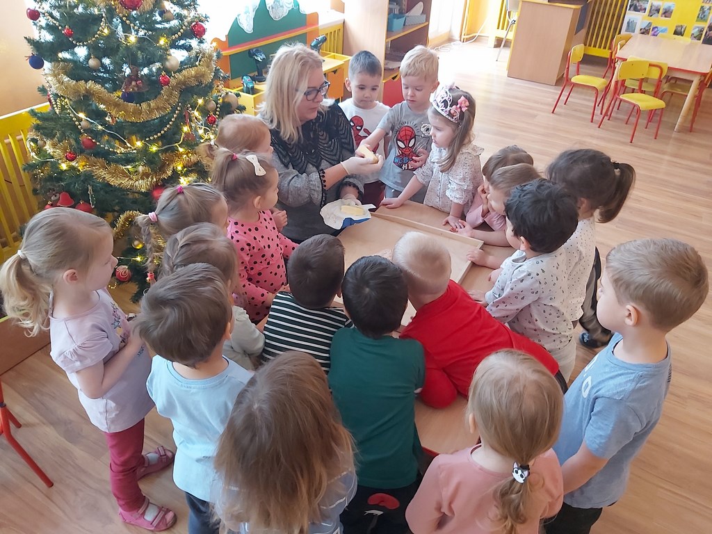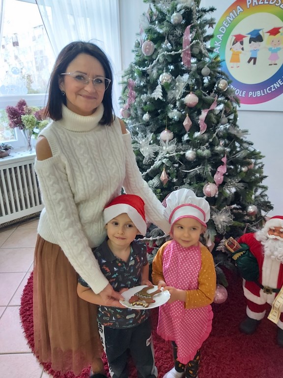a dzieci z radością częstowały pierniczkami pracowników przedszkola.