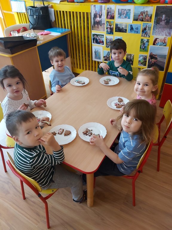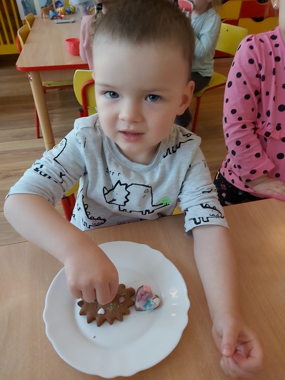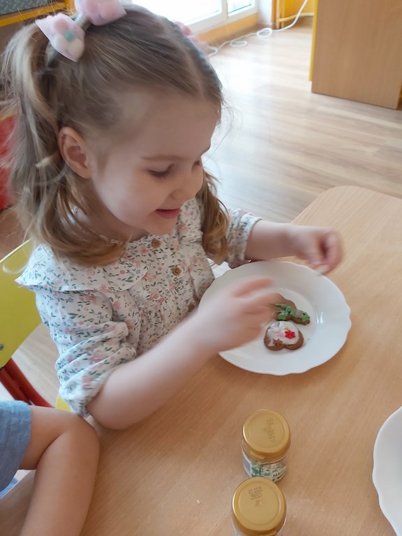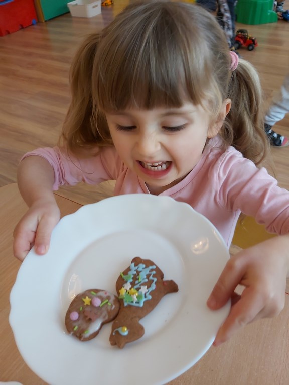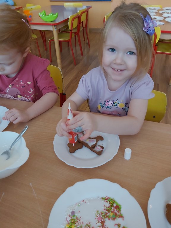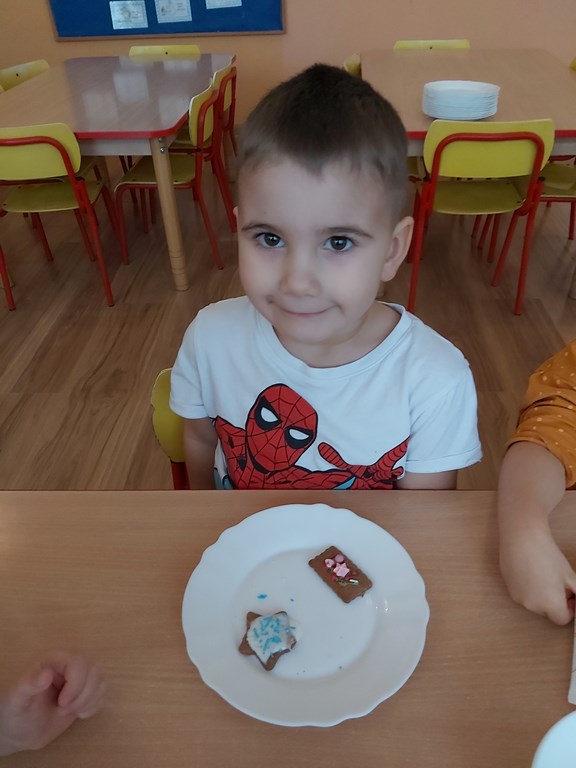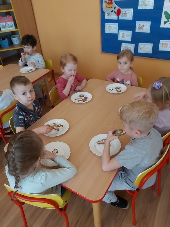 przedszkolaki z grupy Żabki wraz ze swoimi paniami przygotowały pierniczki.